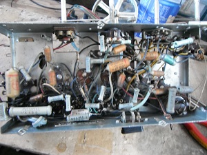 *平滑電解コンデンサー交換、ブロックコンデンサーはダミーに残しますので、端子は根元で切断。