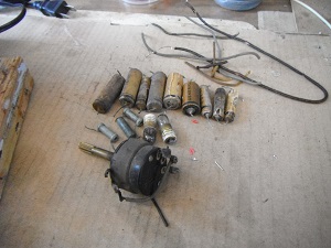 *外した部品、ボリュームの軸は切断して、交換した新しい軸の延長に使います。