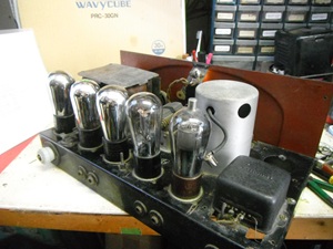 *フィラメントとチューニング目盛照明の豆球を点灯させてトランスの発熱をチェック致します。 |